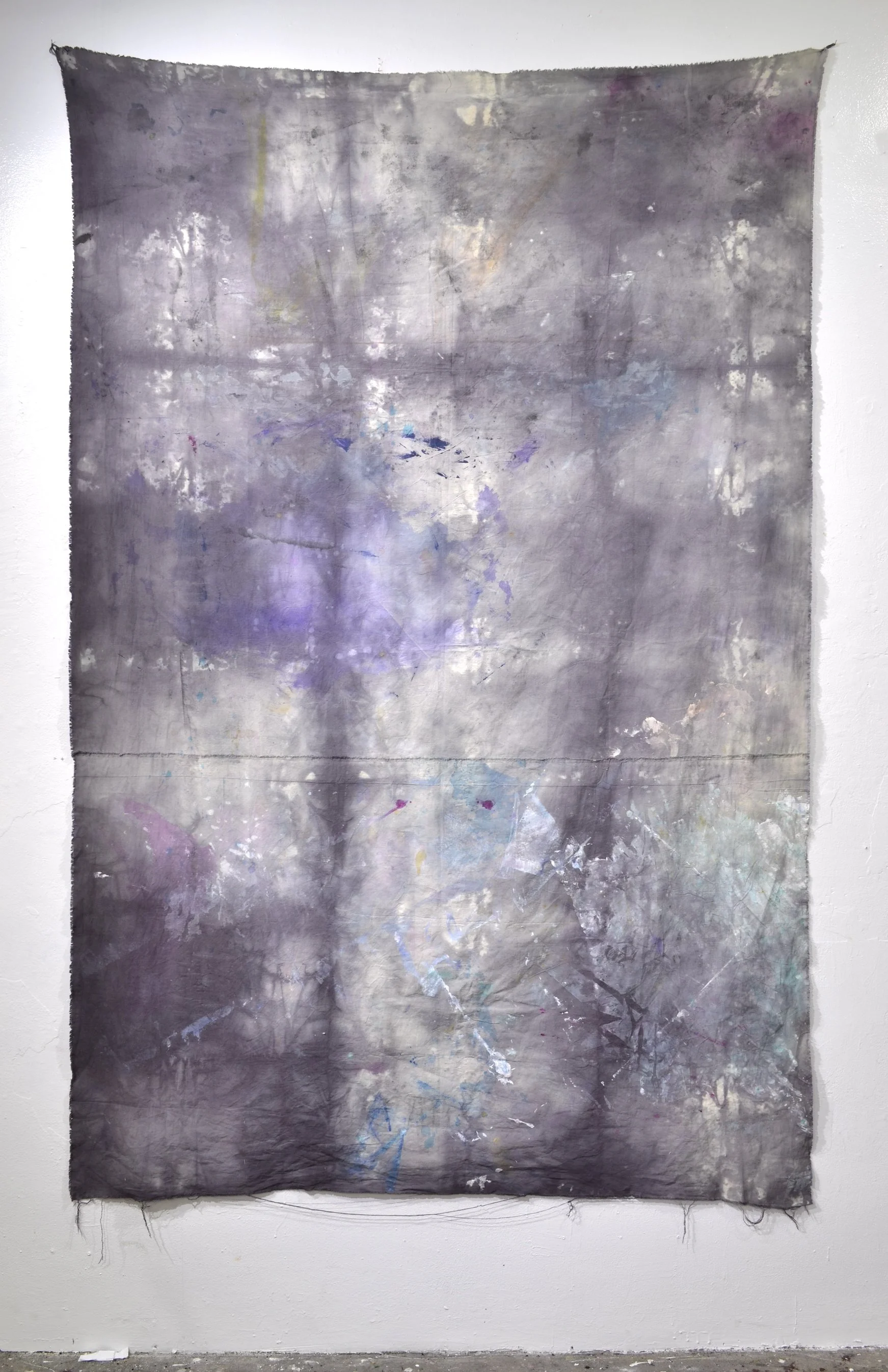 Remnant 3 detail view, pigment, rainwater, acrylic on canvas, 95x59 inches, 2021